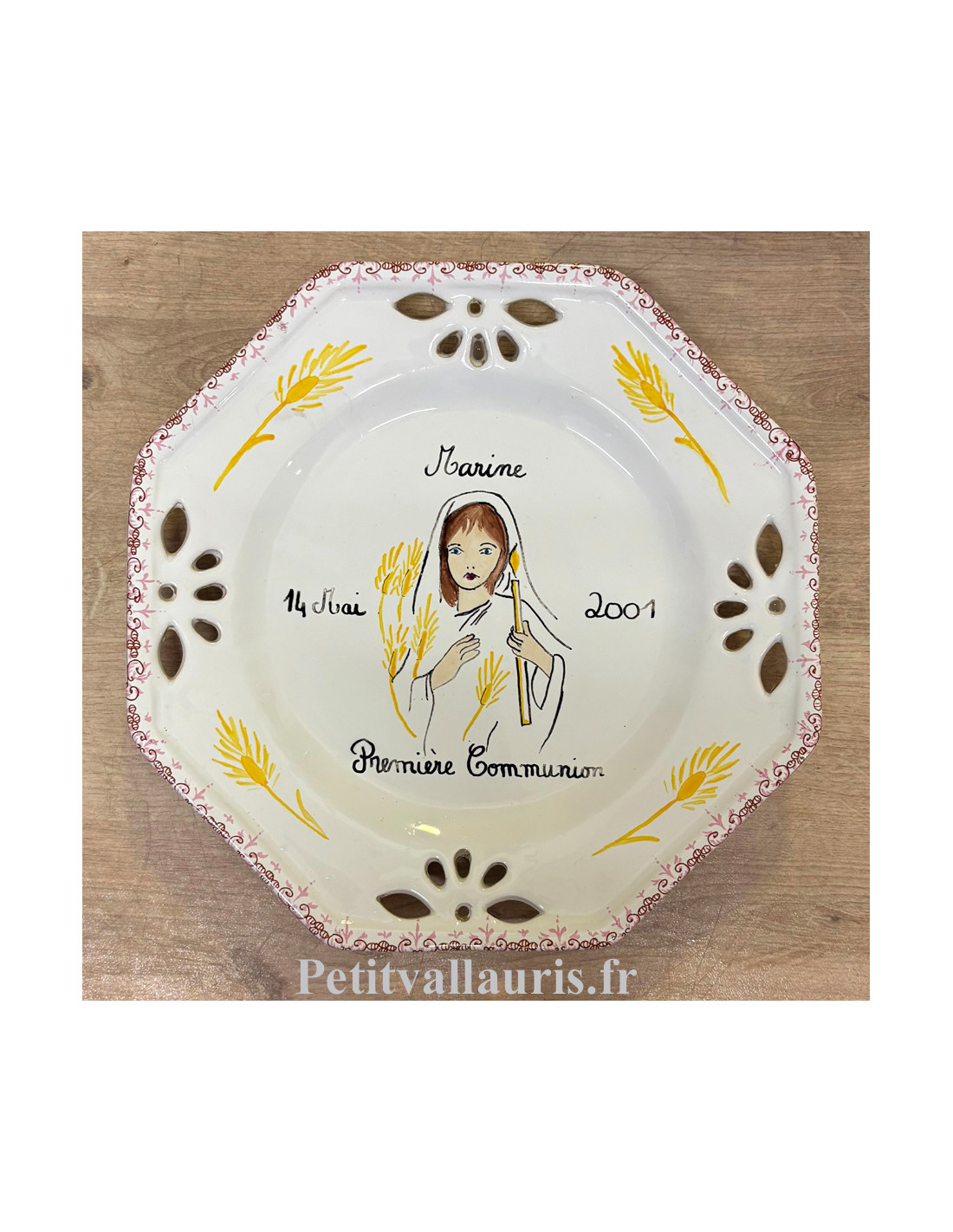 Assiette octogonale ajourée personnalisée pour souvenir de communion solennelle