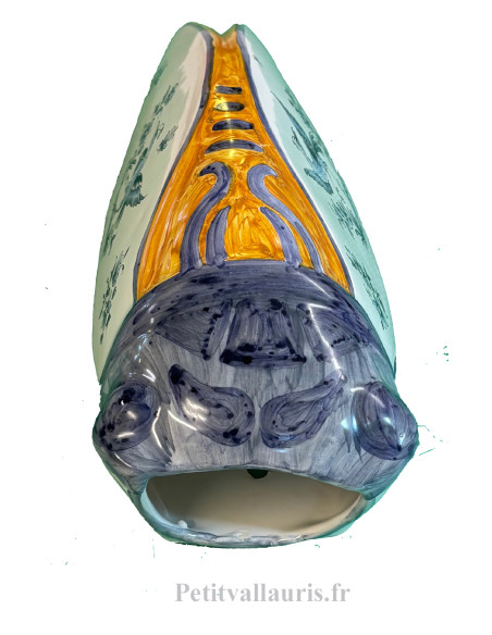 Cigale taille 5 en céramique pour l’intérieur et l'exterieur décor reproduction vieux moustiers bleu et couleurs jaune et bleue.