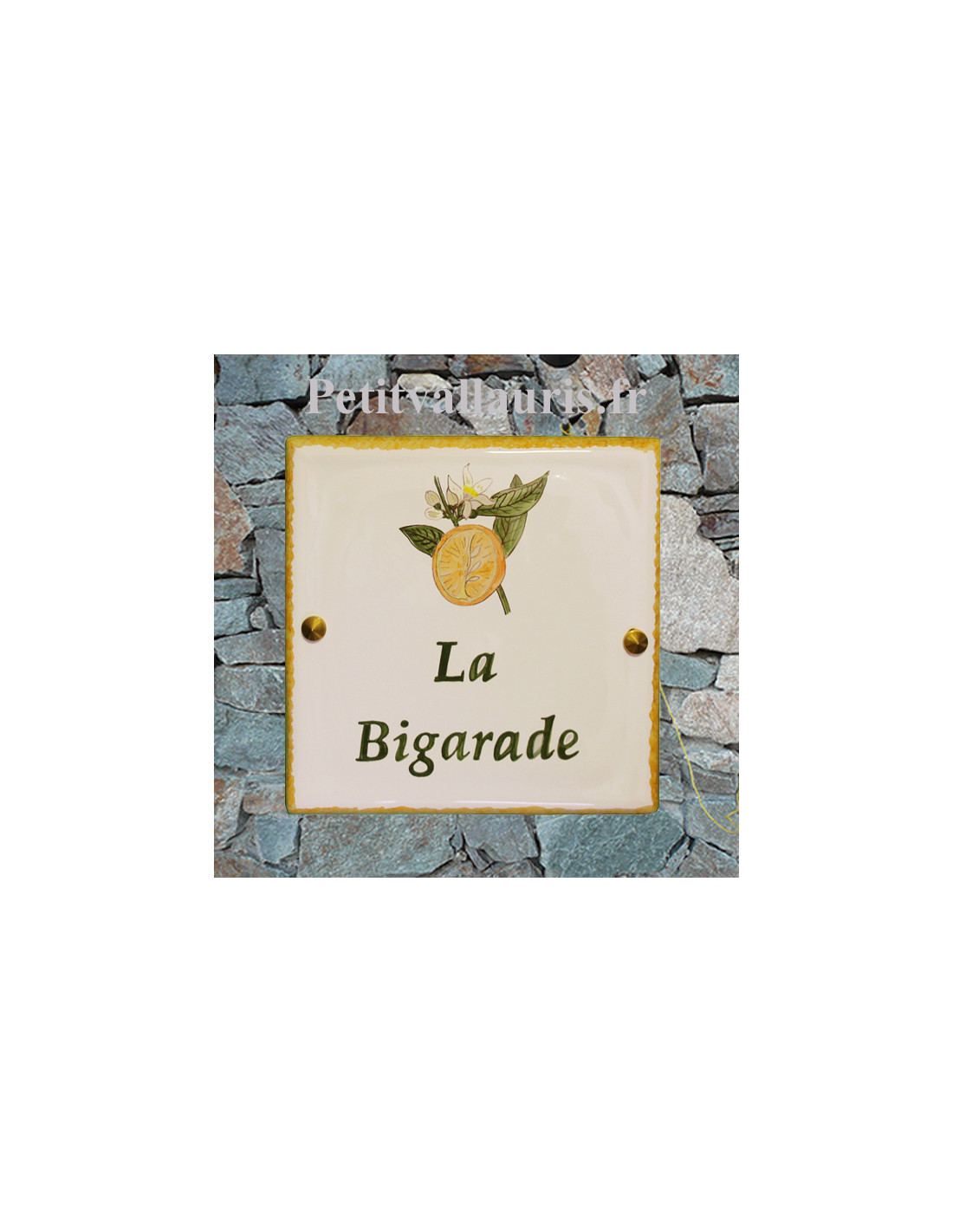 Grande plaque de maison en céramique modèle carrée avec motif Bigarade + personnalisation