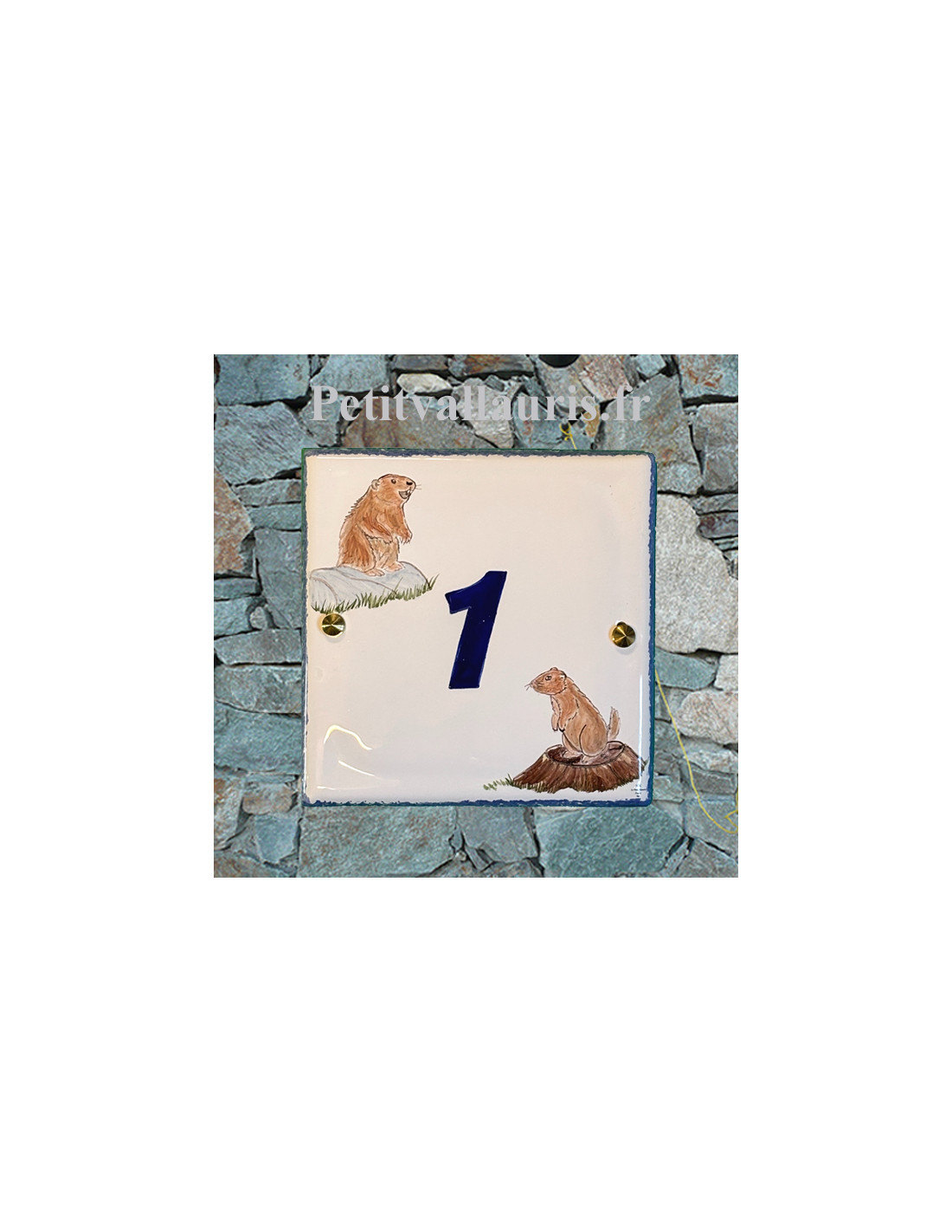 Grande plaque de maison en céramique modèle carrée avec motif artisanal les marmottes + personnalisation