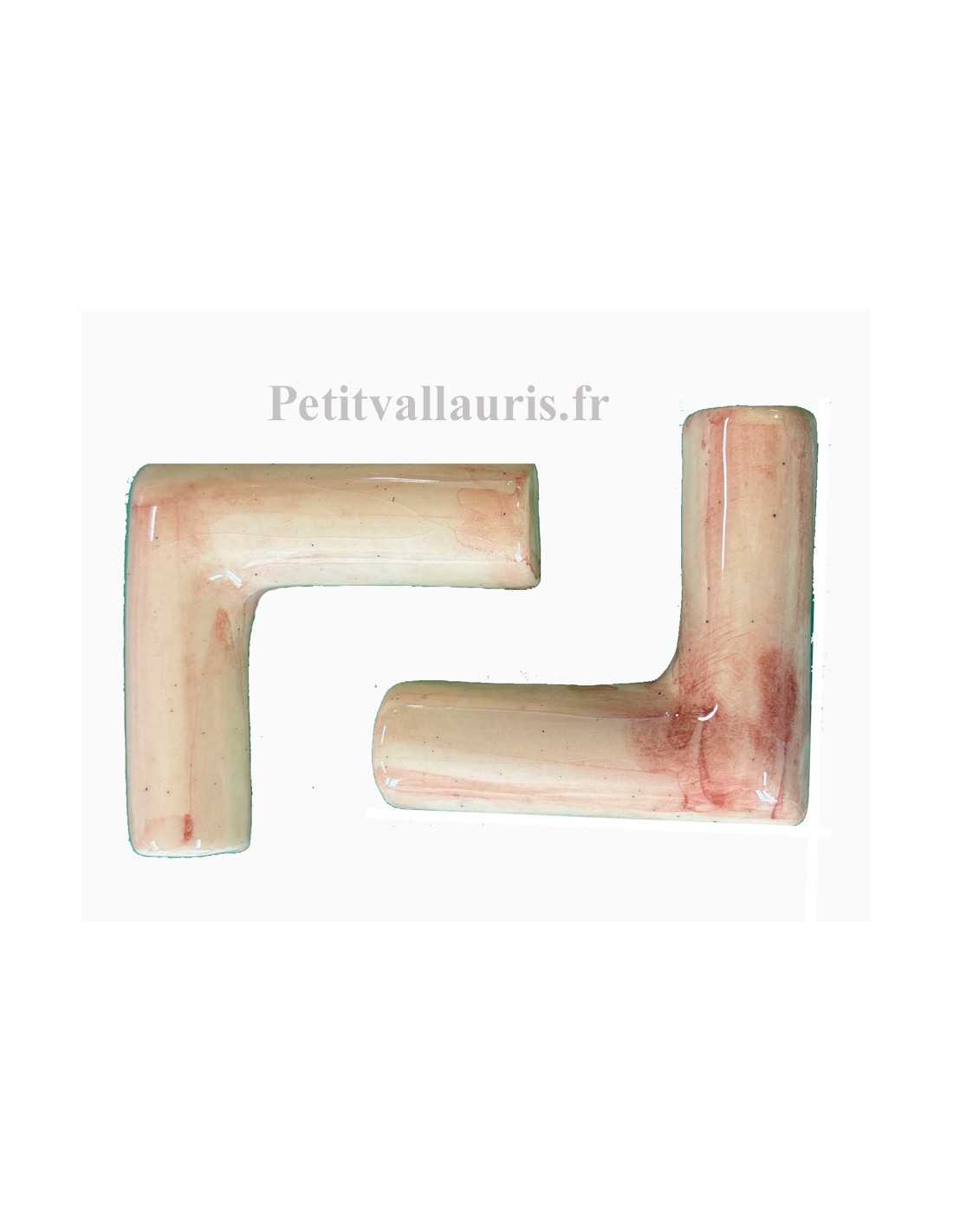 Listel modèle fin demi-lune émaillé en faïence de couleur beige saumon brillant d'angle repositionnable sur chaque coté.