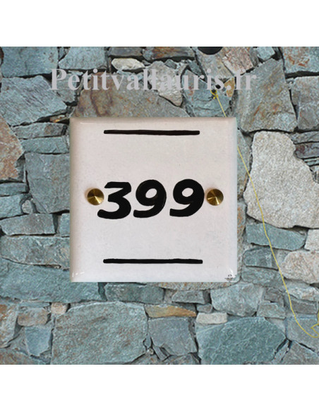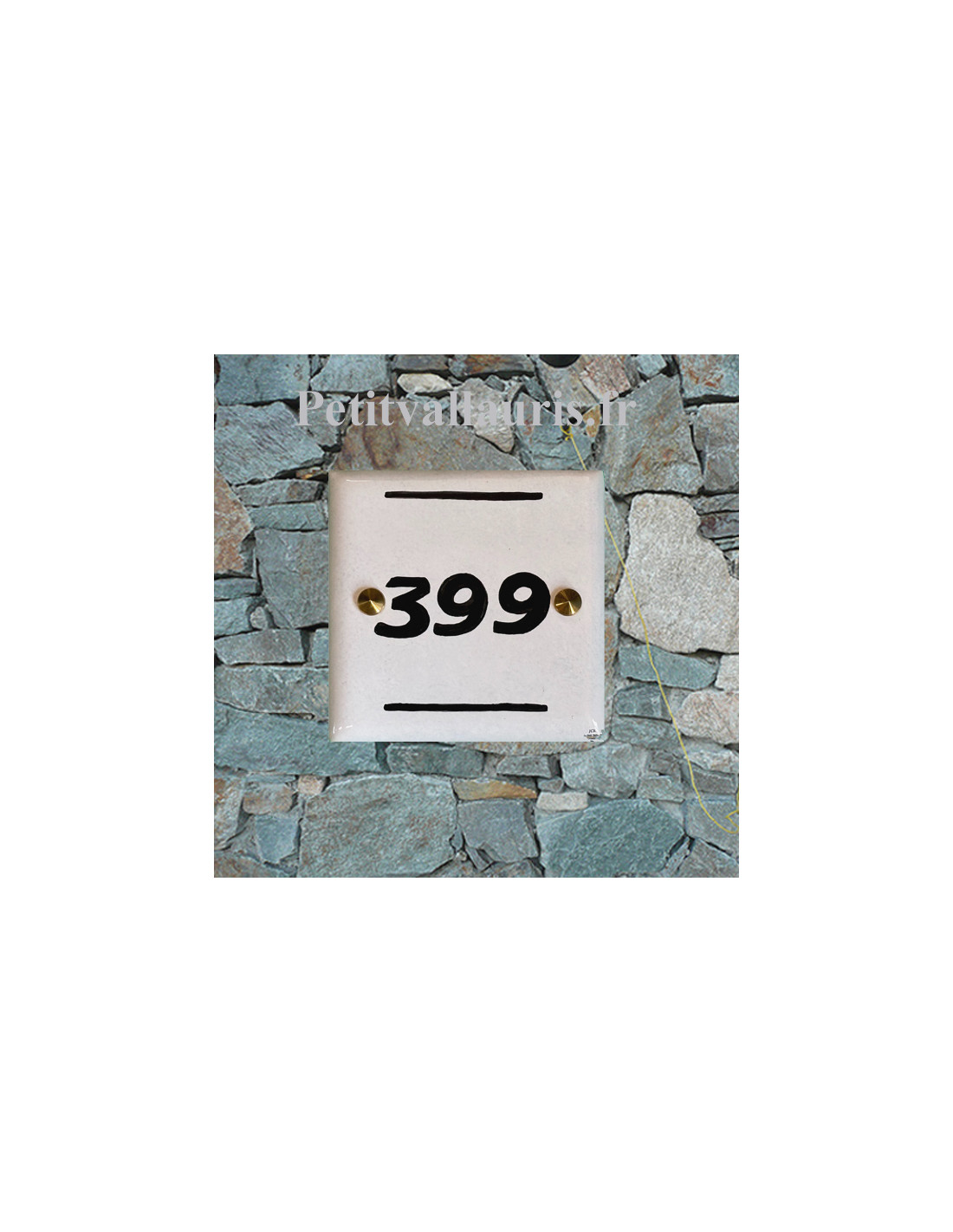 chiffre sur plaque de maison en céramique, Numéro chiffre de Maison contemporain 15x15 cm inscription personnalisée noire fond gris clair pose horizontale inscription personnalisée ( dans la limite du possible) .