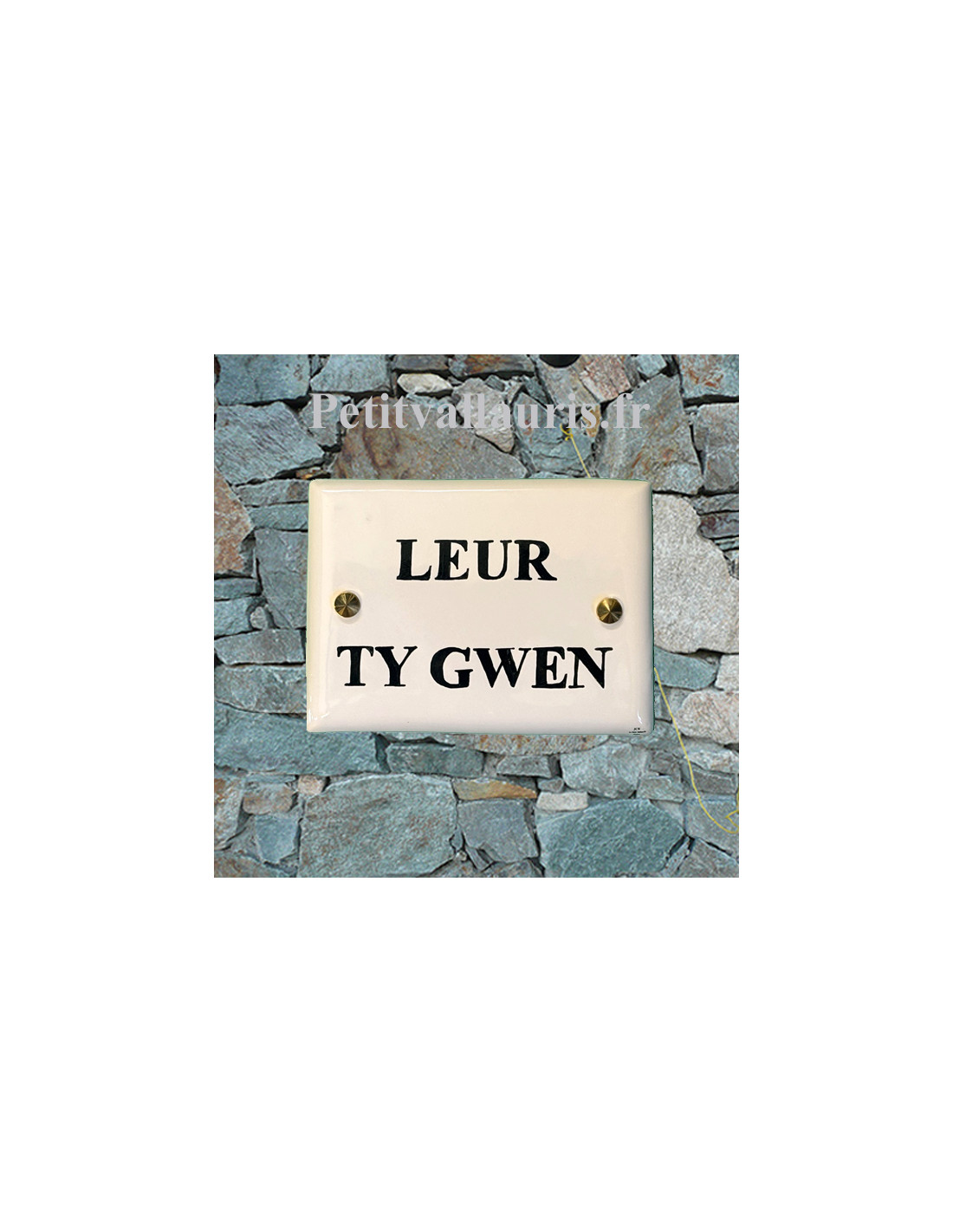 Plaque de signalisation en céramique émaillée bord et inscription personnalisée noire