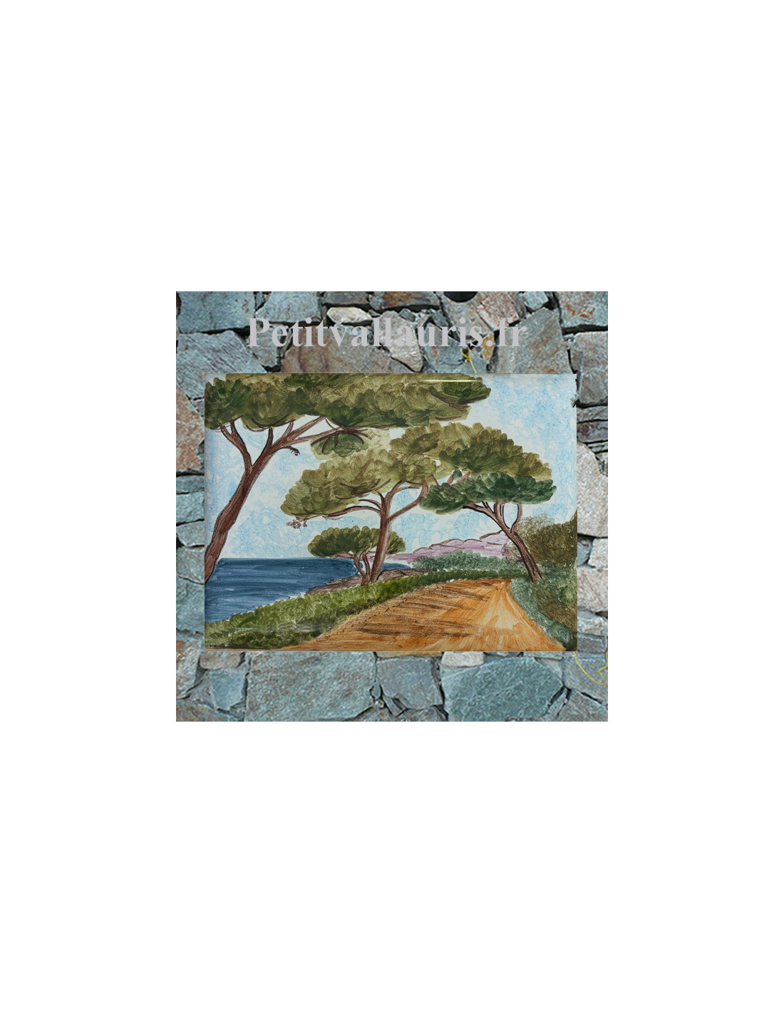 plaque de maison céramique décor paysage littoral méditerranéen et pins
