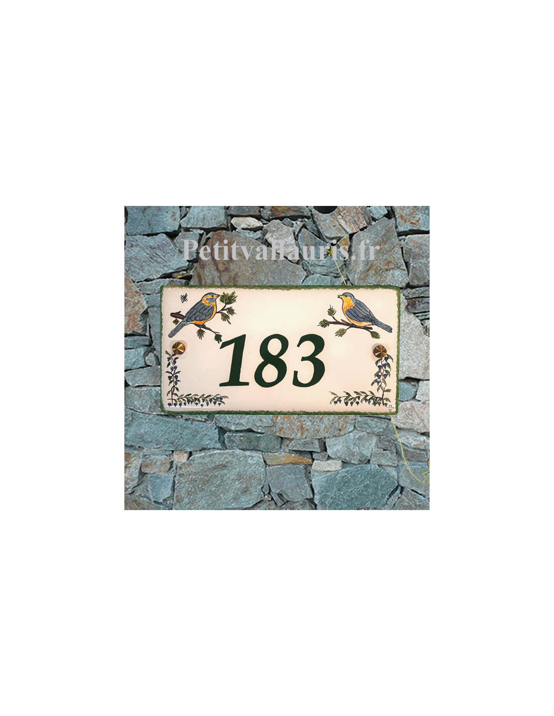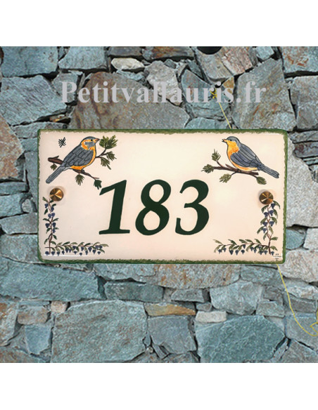 Plaque de Maison en céramique émaillée décor artisanal les grives + inscription personnalisée