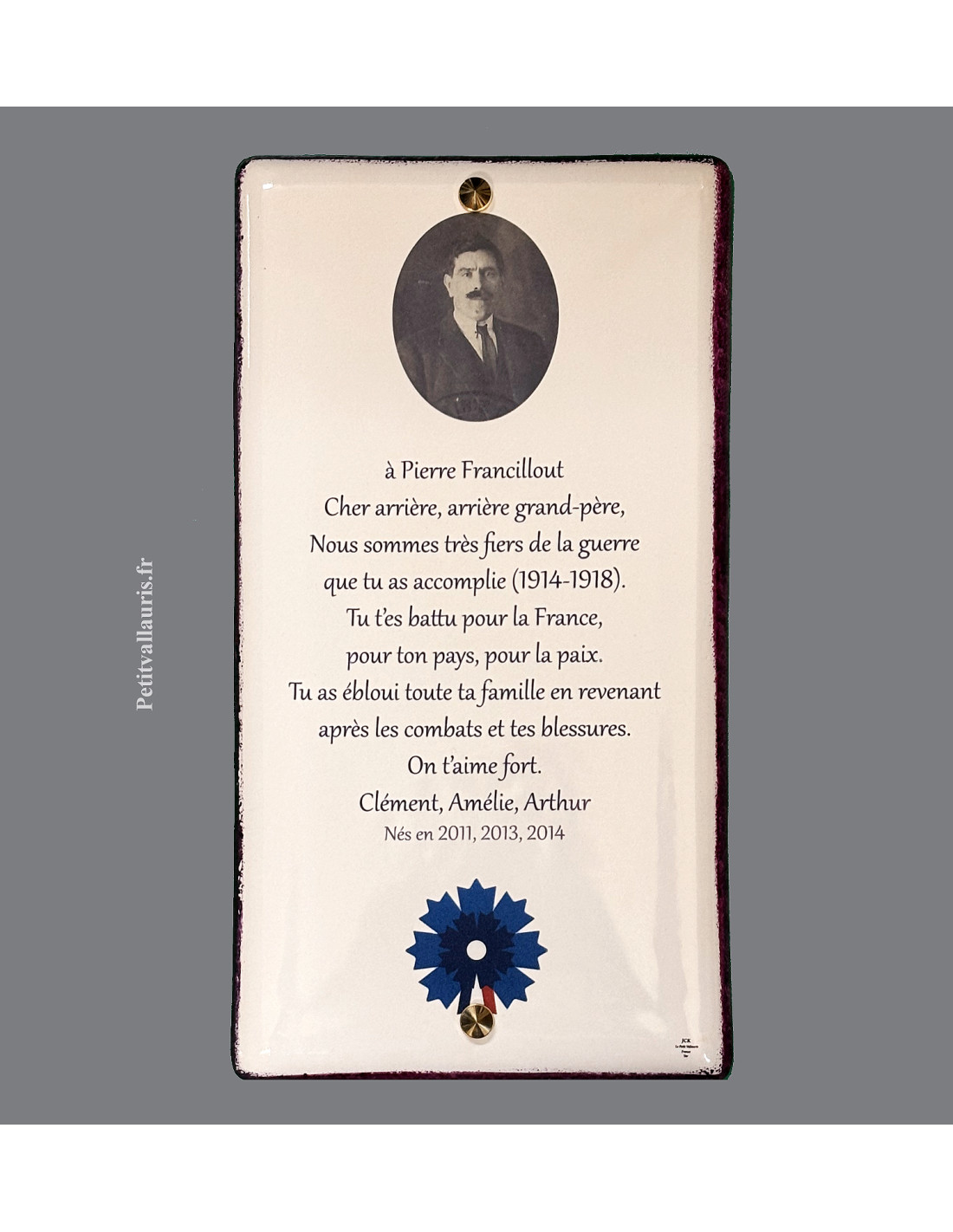 N'oubliez pas de sauvegarder votre personnalisation pour pouvoir l'ajouter au panierPlaque en faïence émaillée fond blanc avec inscription personnalisée noire (tout est modifiable).