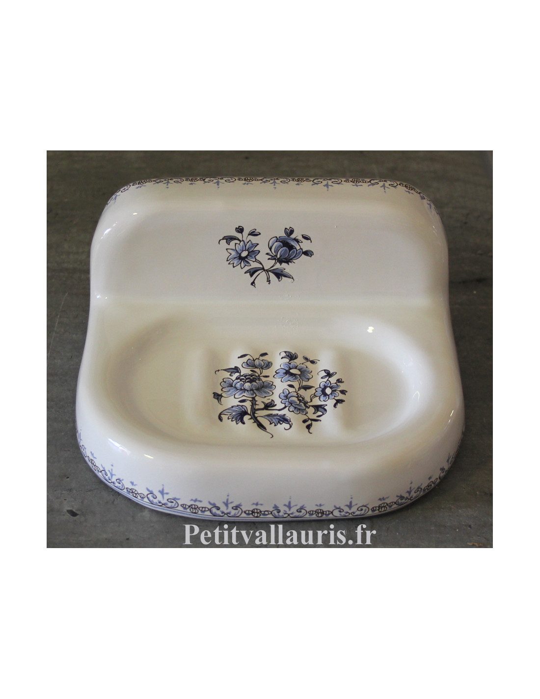 Porte savon en faience blanche à poser ou à inserer dans un anneau mural motifs reproduction Vieux Moustiers polychrome