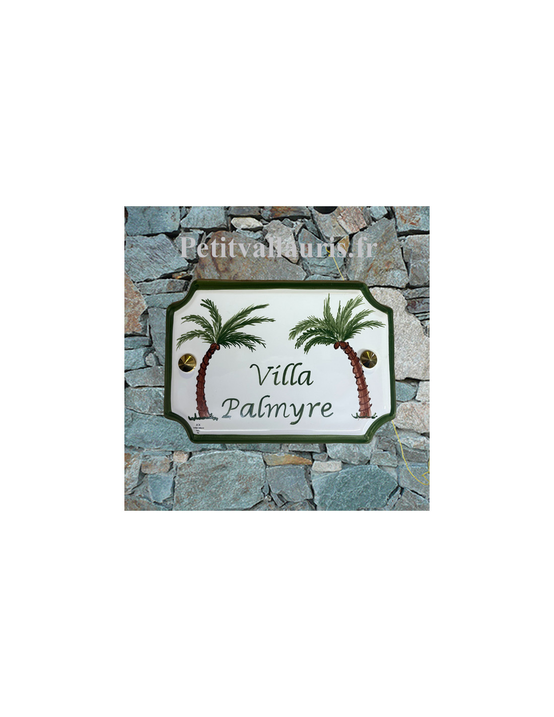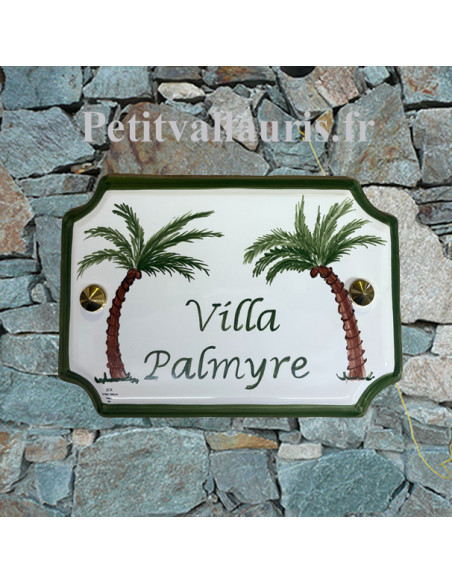 N'oubliez pas de sauvegarder votre personnalisation pour pouvoir l'ajouter au panierPlaque en faïence émaillée, sur fond blanc, au contour et texte de coloris vert.