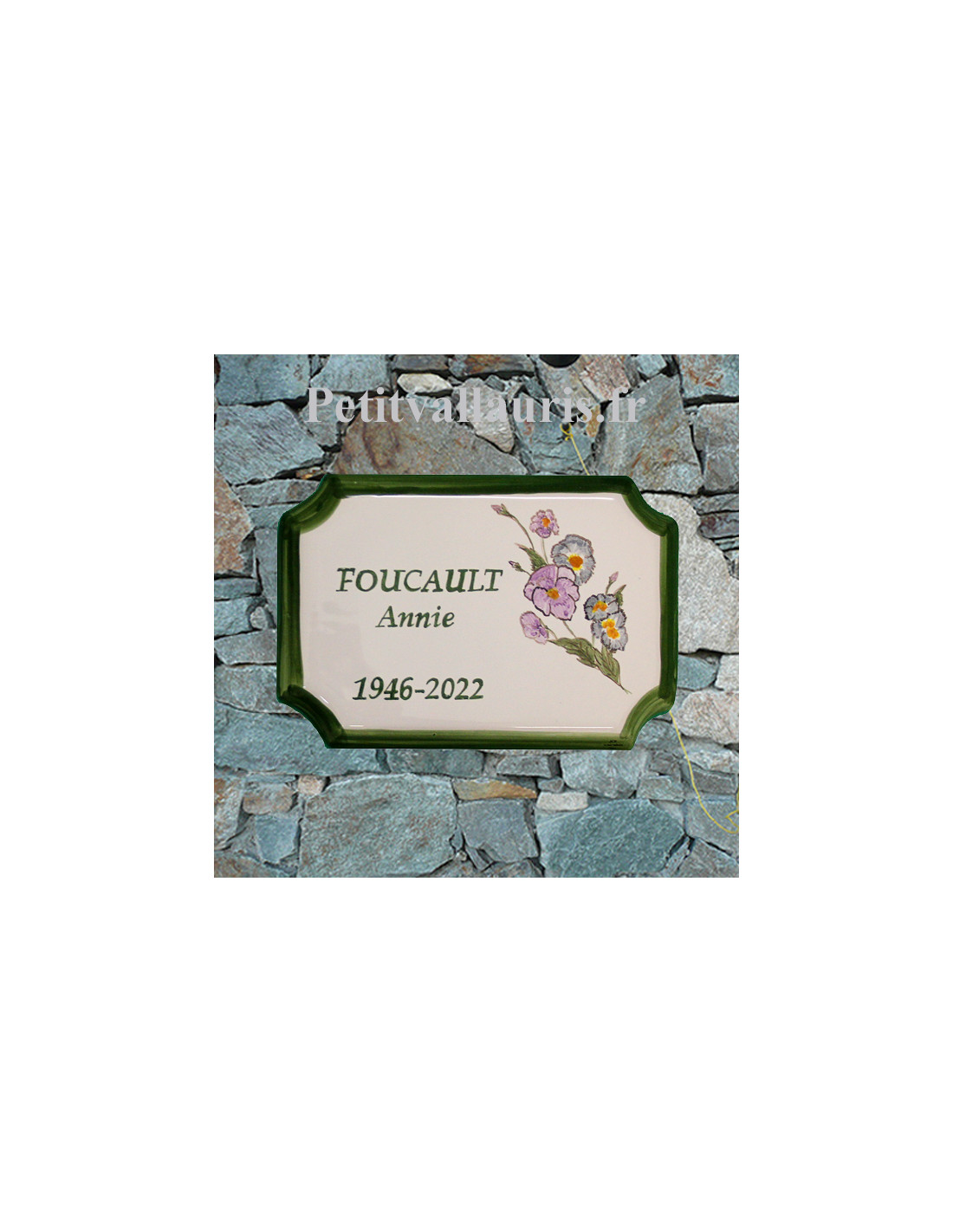 Plaque de Maison en céramique aux angles incurvés reproduction vieux moustiers inscription personnalisée