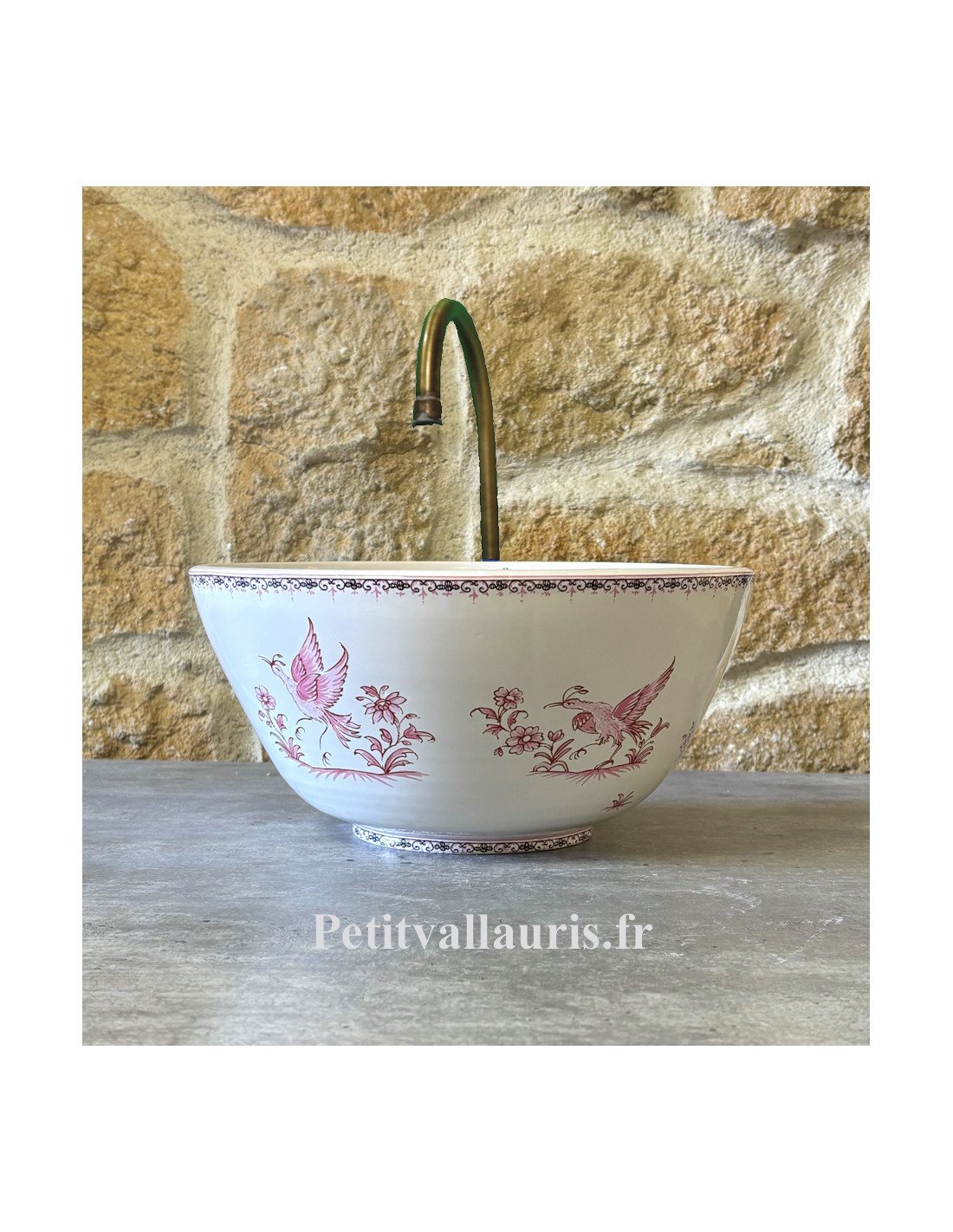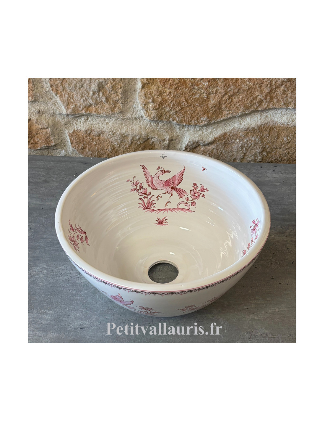 Petite Vasque en Faïence forme bol ronde pour salle de bain et toilettes motifs camaïeux de rose.